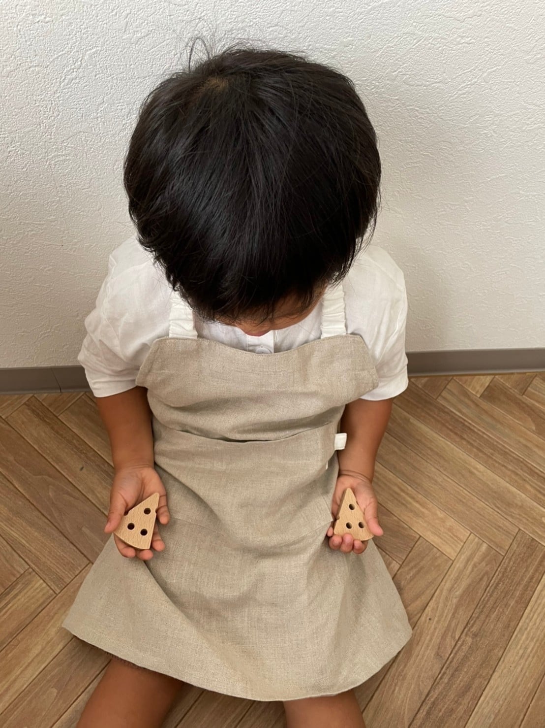 シンプルなエプロンなので、どんなお洋服とも相性がいいと思います。